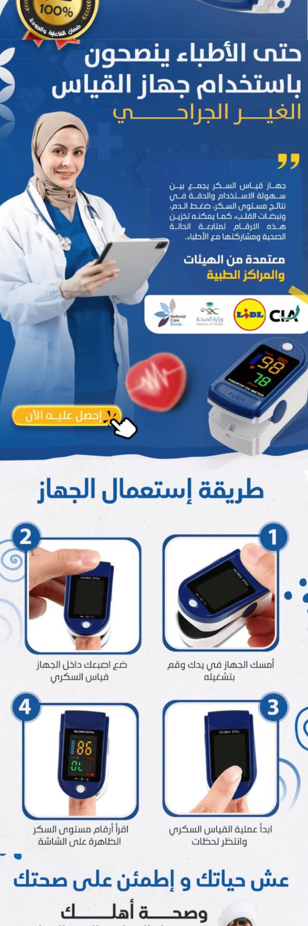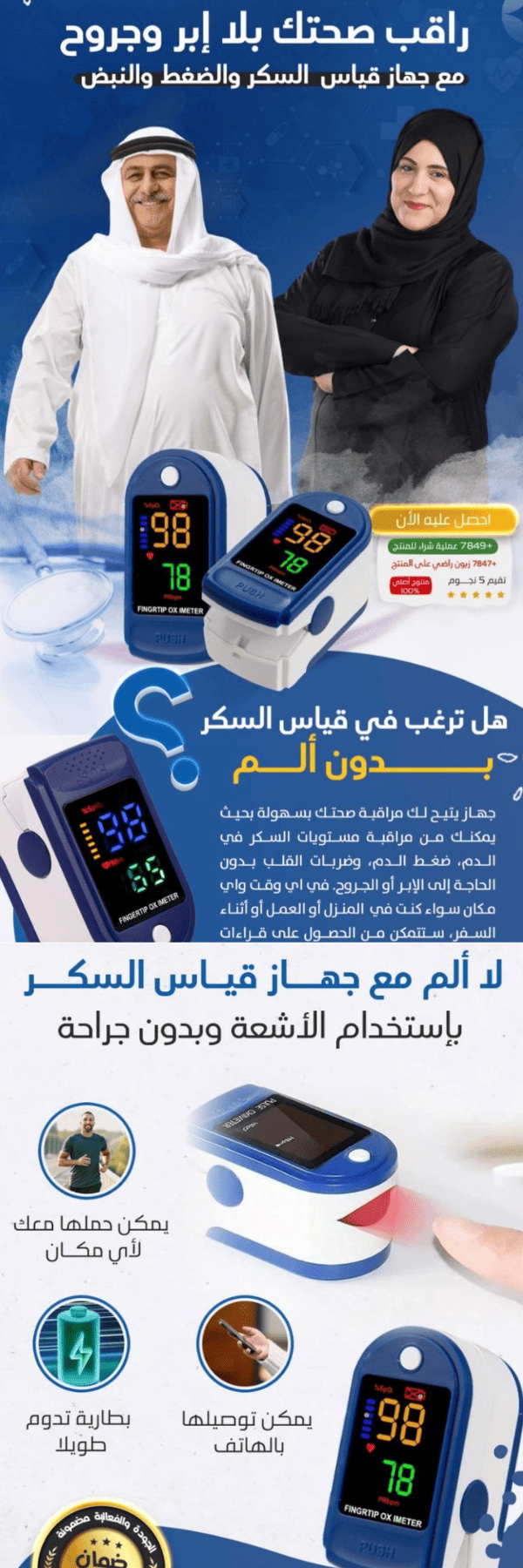 🩺 متابعة صحّتك من البيت بكل سهولة - جهاز قياس بمشبك الإصبع يعطيك قراءة دقيقة خلال ثواني،